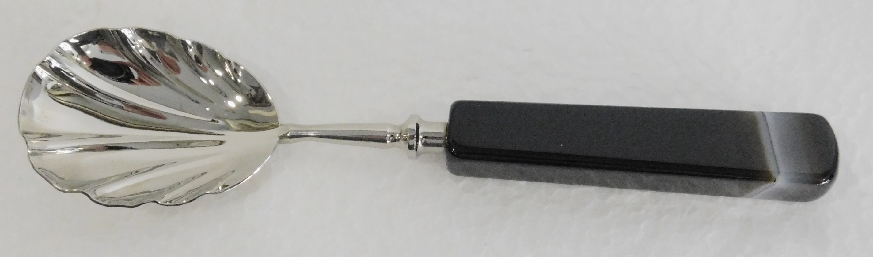 Dekorativer Sahnelöffel Muschellaffe mit Griff Achat 17cm