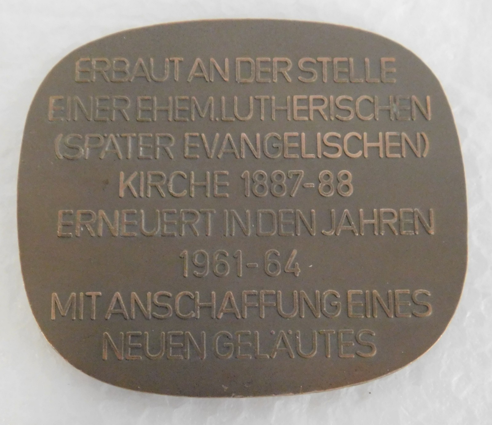 Alte Bronze Medaille Plakette Evangelische Kirche Ober-Flörsheim 6,5x5,8cm