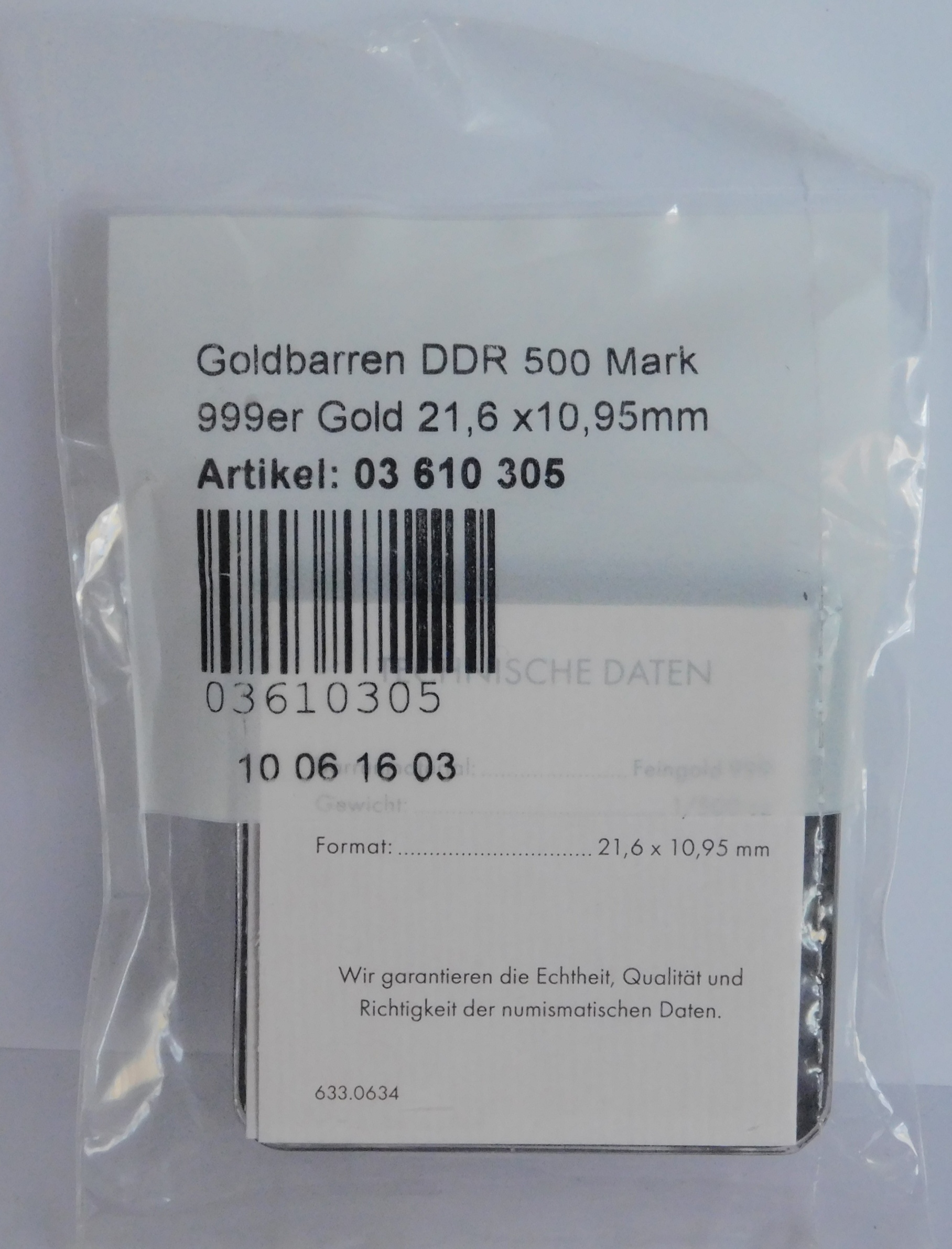 1/500 Unze Gold 999 - 500 Mark DDR