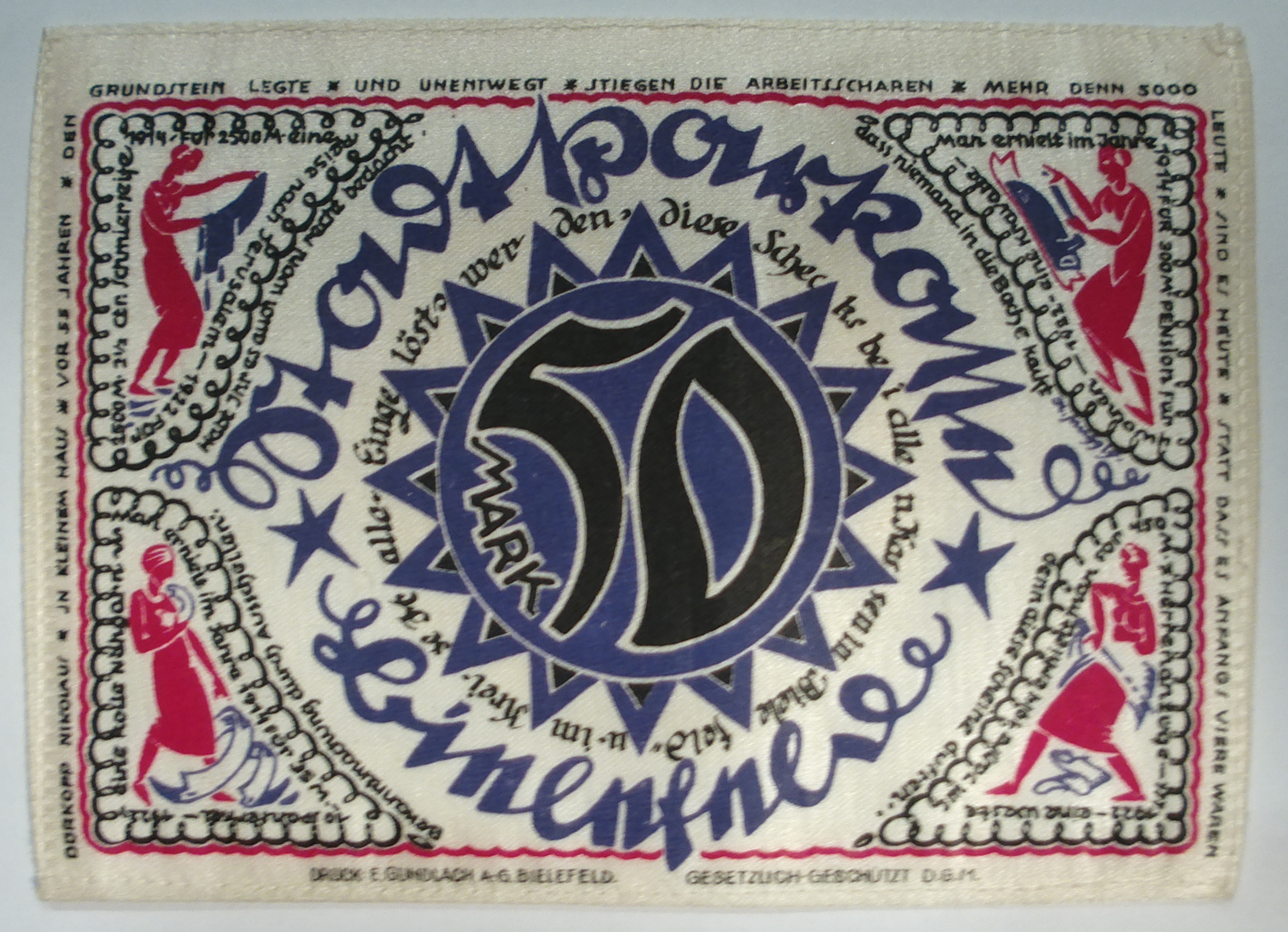 Mobile Preview: Notgeld Seide Stadt Bielefeld 50 Mark 1922 Seidengeld #b