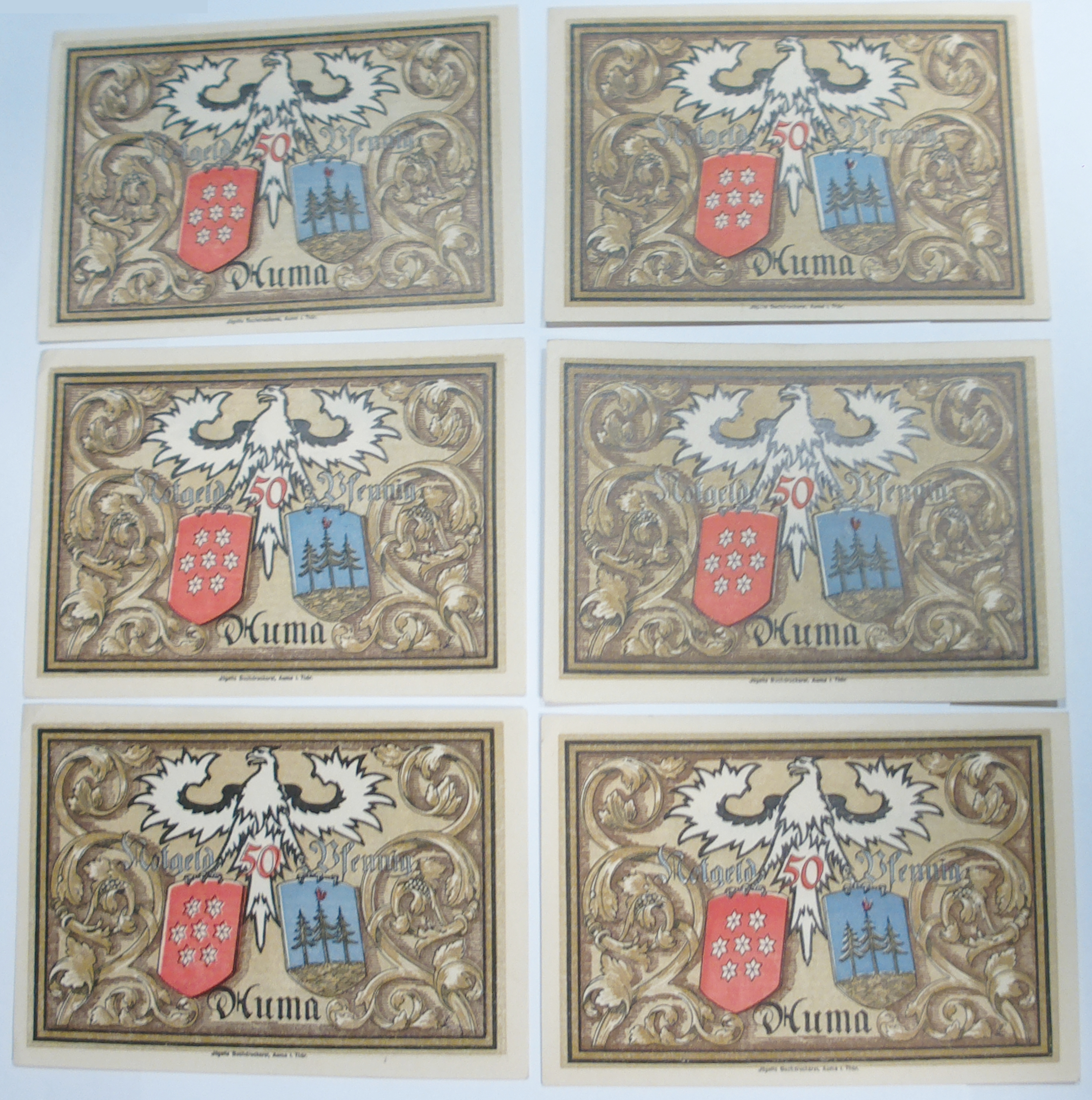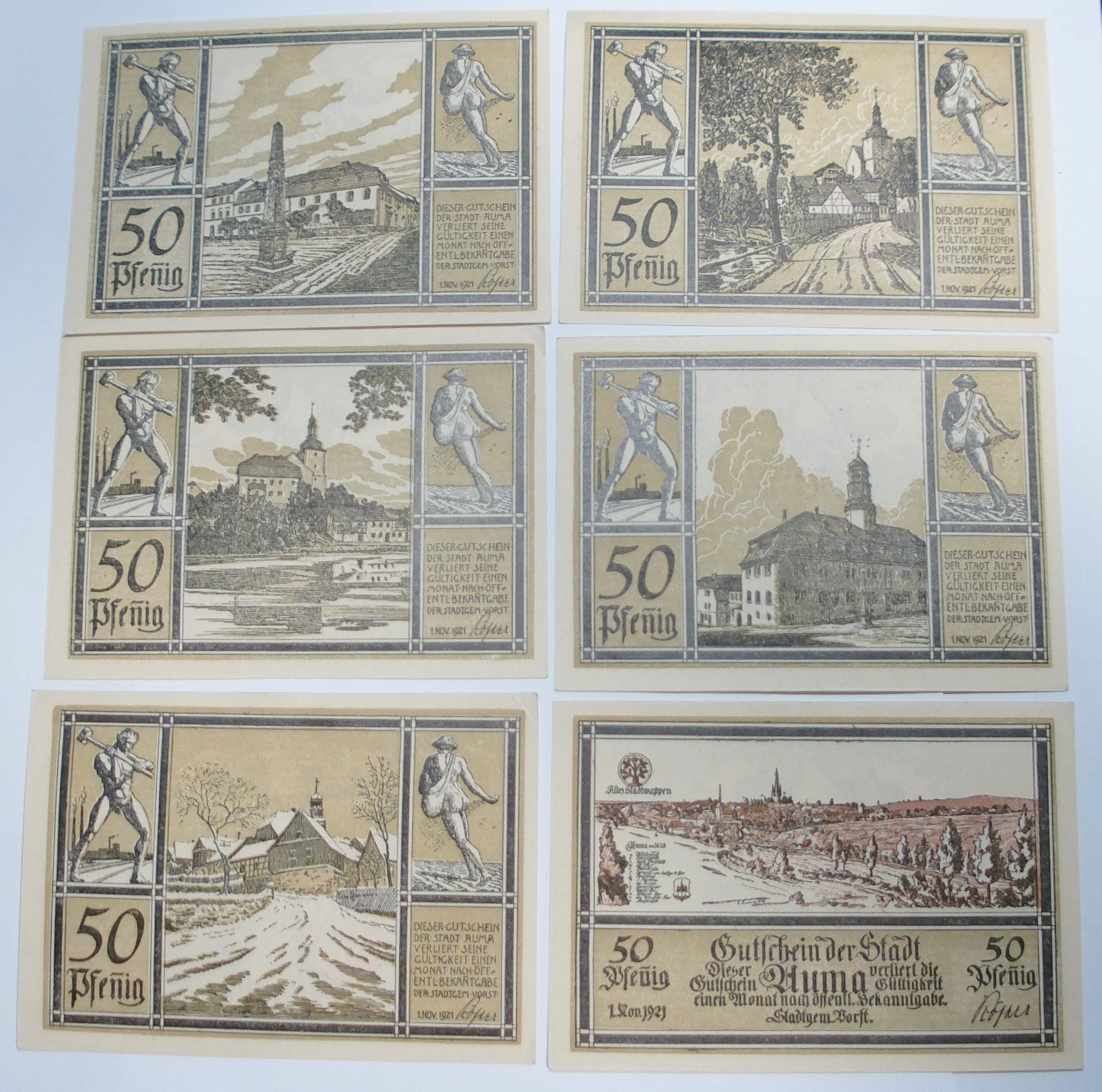 Mobile Preview: 6x Notgeld 50 Pfennig 1921 Auma in Thüringen