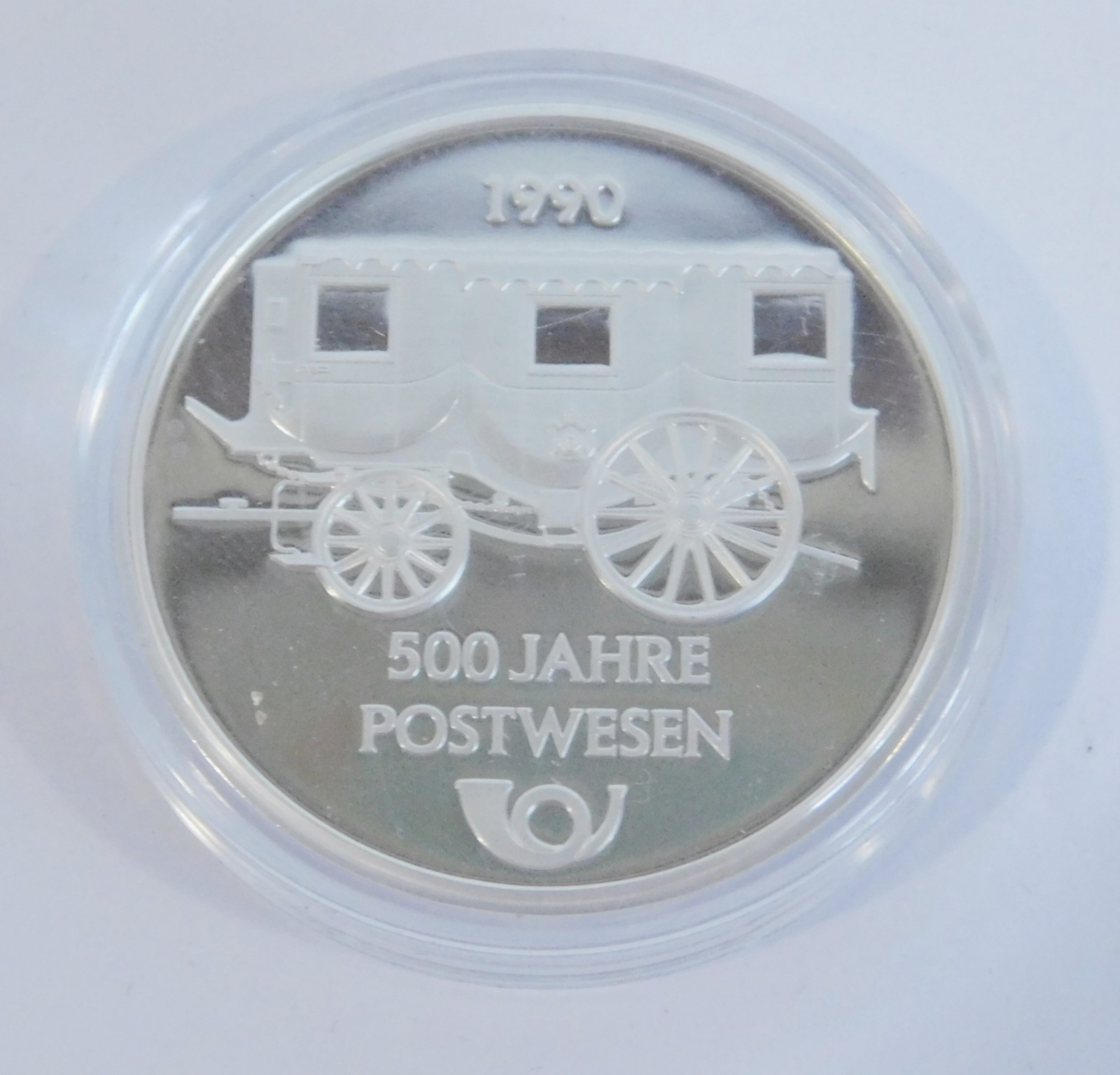 Medaille DDR versilbert Ø3,5cm 500 Jahre Deutsches Postwesen 1990