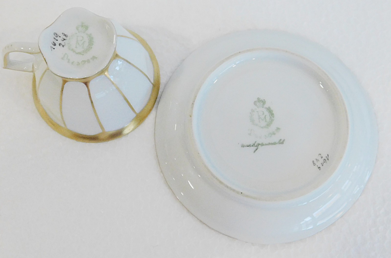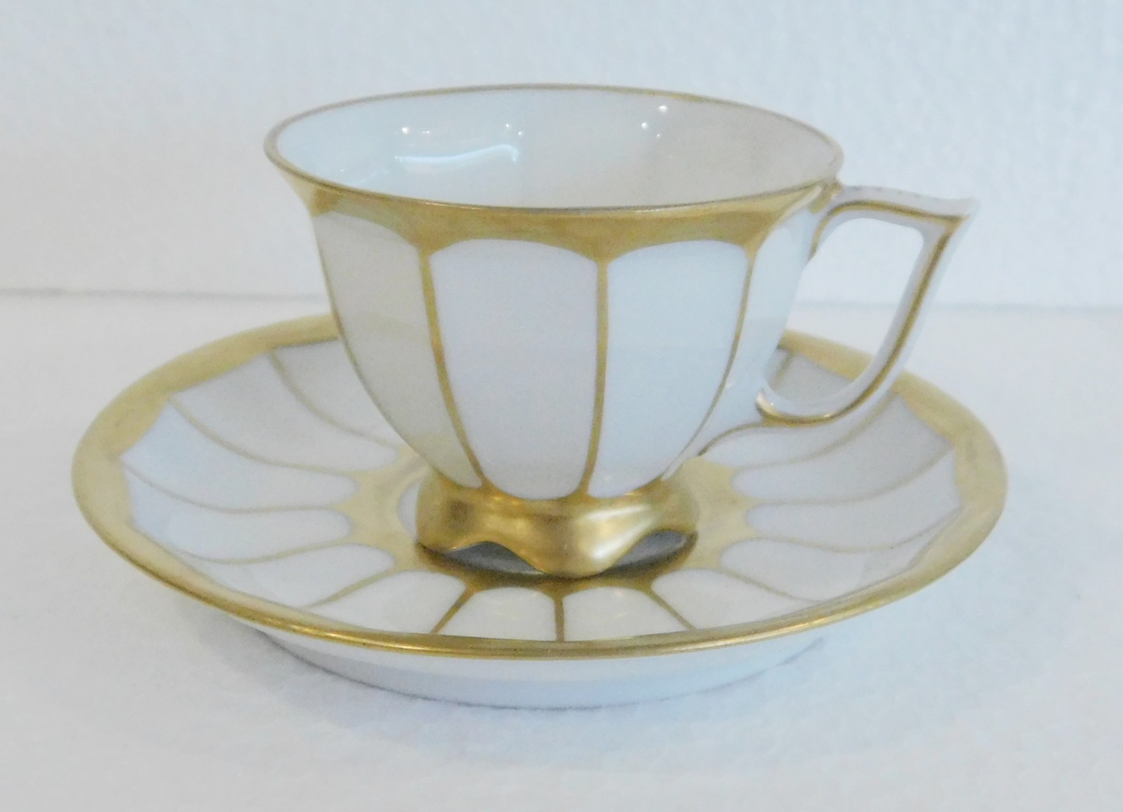 Art Deco Mokkatasse PM Dresden handgemalt weiß-gold