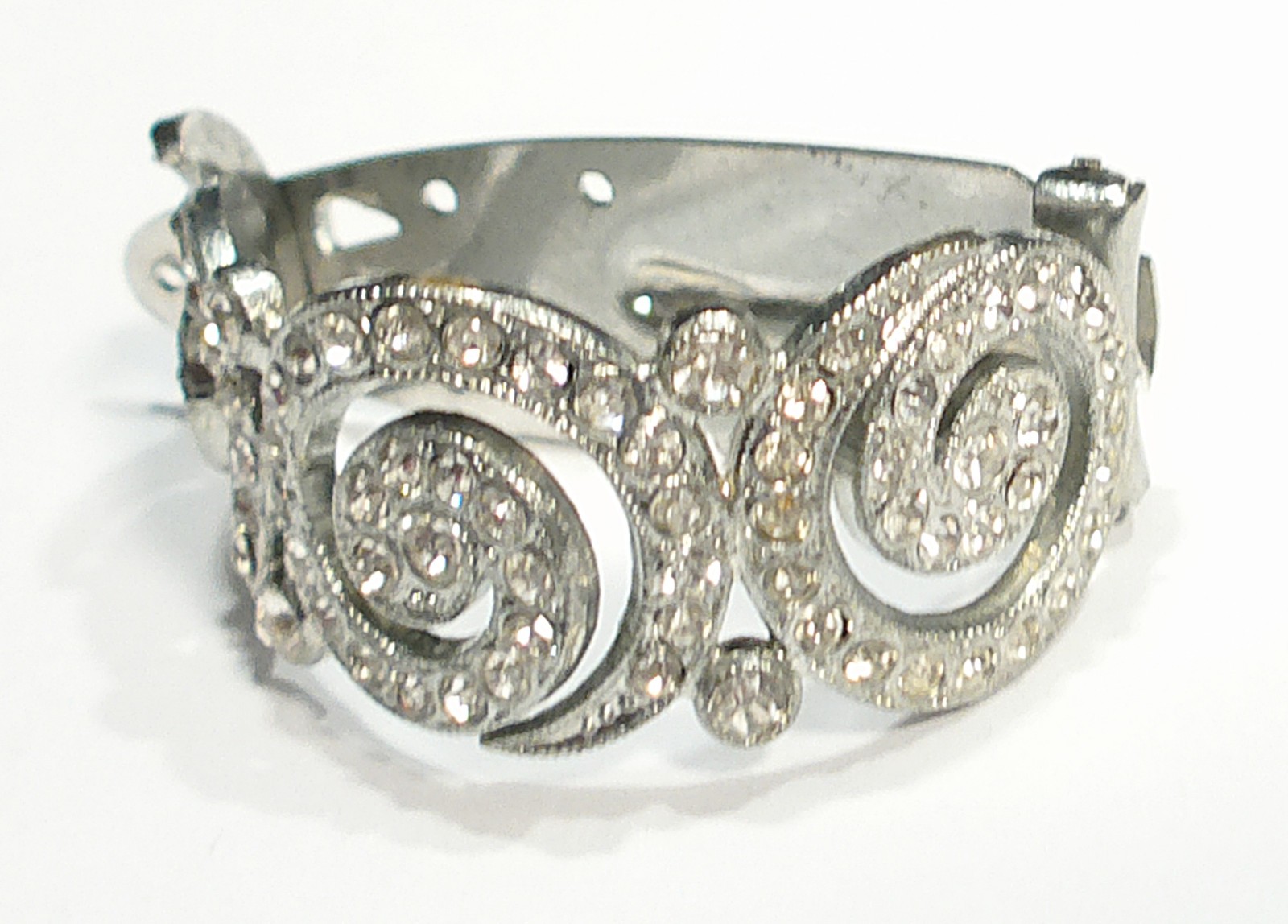 Vintage Tuchclip Klammer silberfarben mit kleinen hellen Steinchen