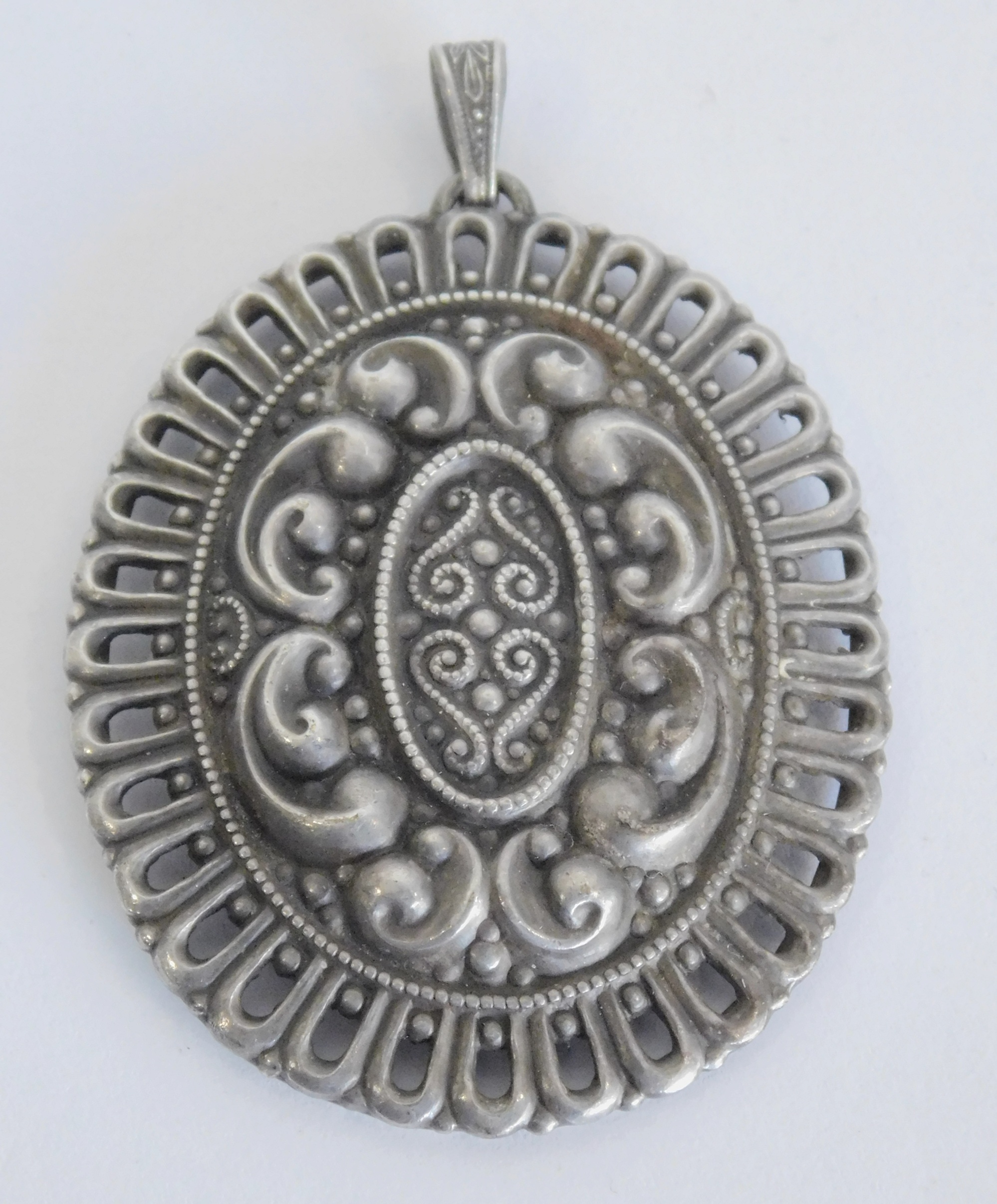 Großer alter Anhänger versilbert verschnörkelt oval 6x4,7cm