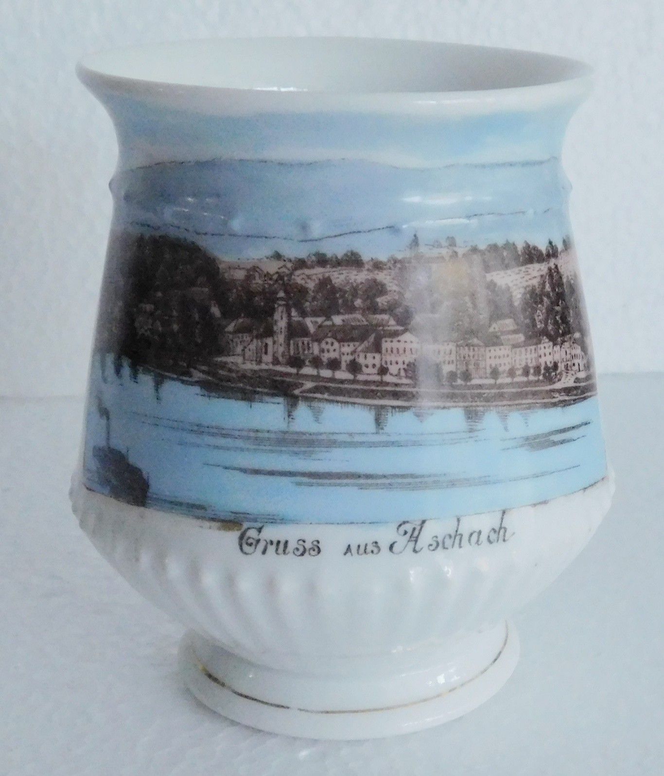 Alte Andenken Tasse Gruss aus Aschach Donau Österreich 10cm