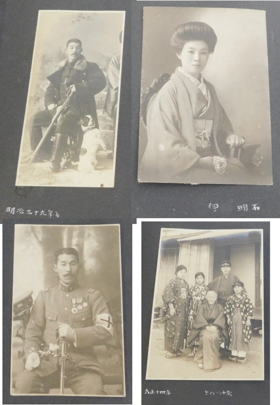 Altes japanisches Fotoalbum, wohl um 1900 und etwas später, zahlreiche interessante Fotos - Familie - Kultur - Geisha - Soldat - Militär (nur einige fotografiert), altersbedingter gebrauchter Zustand, etwas berieben / Einband etwas aufgerieben, Fotos teilweise verblasst / vergilbt, ein paar Fehlstellen, ein paar Seiten leer, ca. 29 x 20,5 x 1,5 cm, Gewicht ca. 720 Gramm.