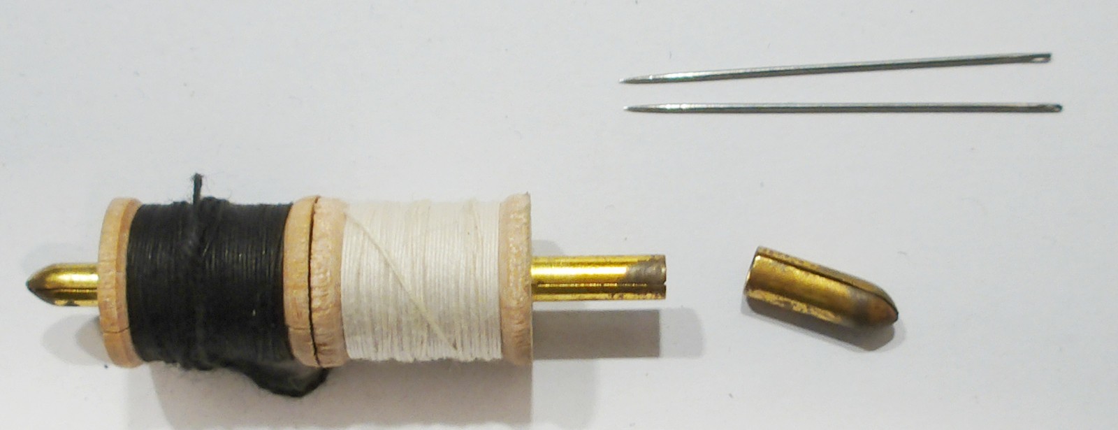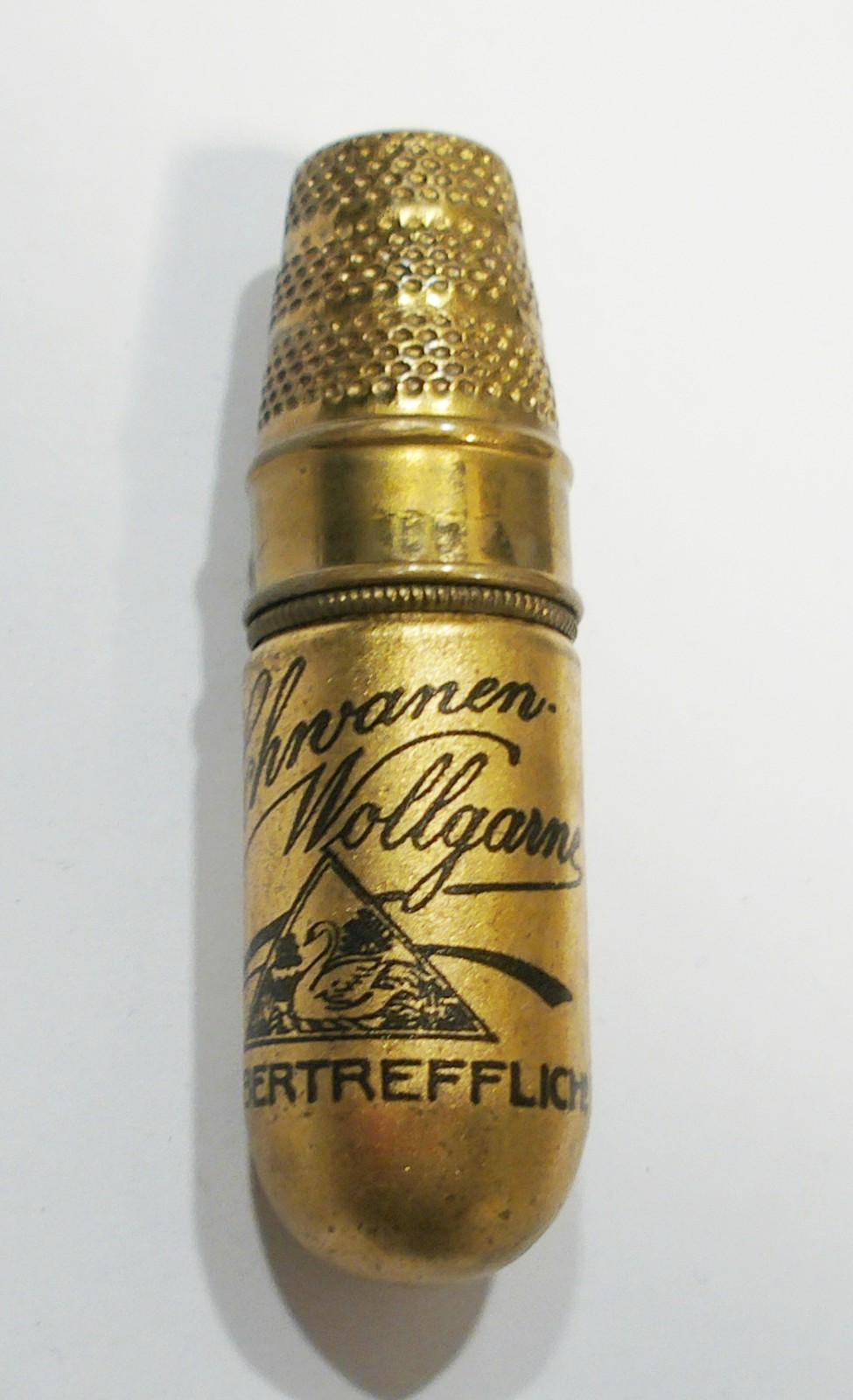 Mobile Preview: Altes Reise Nähset Fingerhut Garn Nadeln Schwanen Wollgarne Werbung NWK