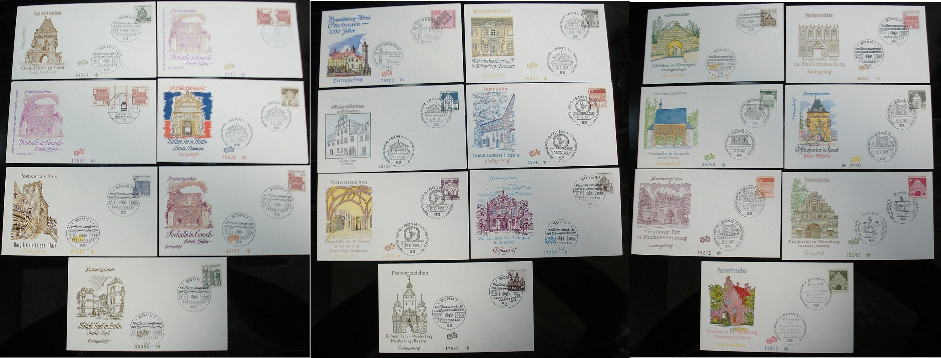 21x Ersttagsbrief Deutsche Bauwerke aus 12 Jahrhunderten