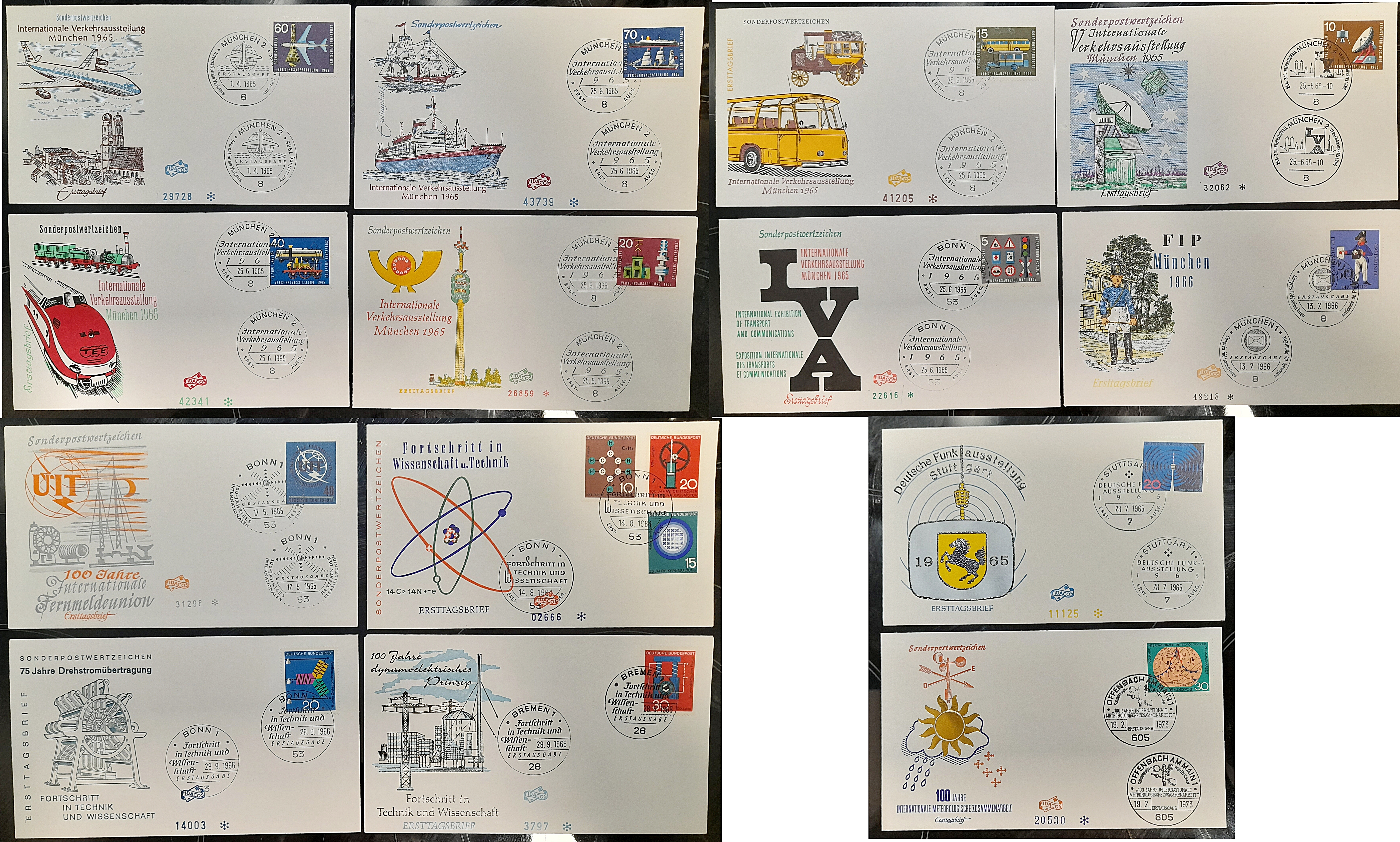 14x Ersttagsbrief Verkehrsausstellung München Wissenschaft Technik Funkausstelg.