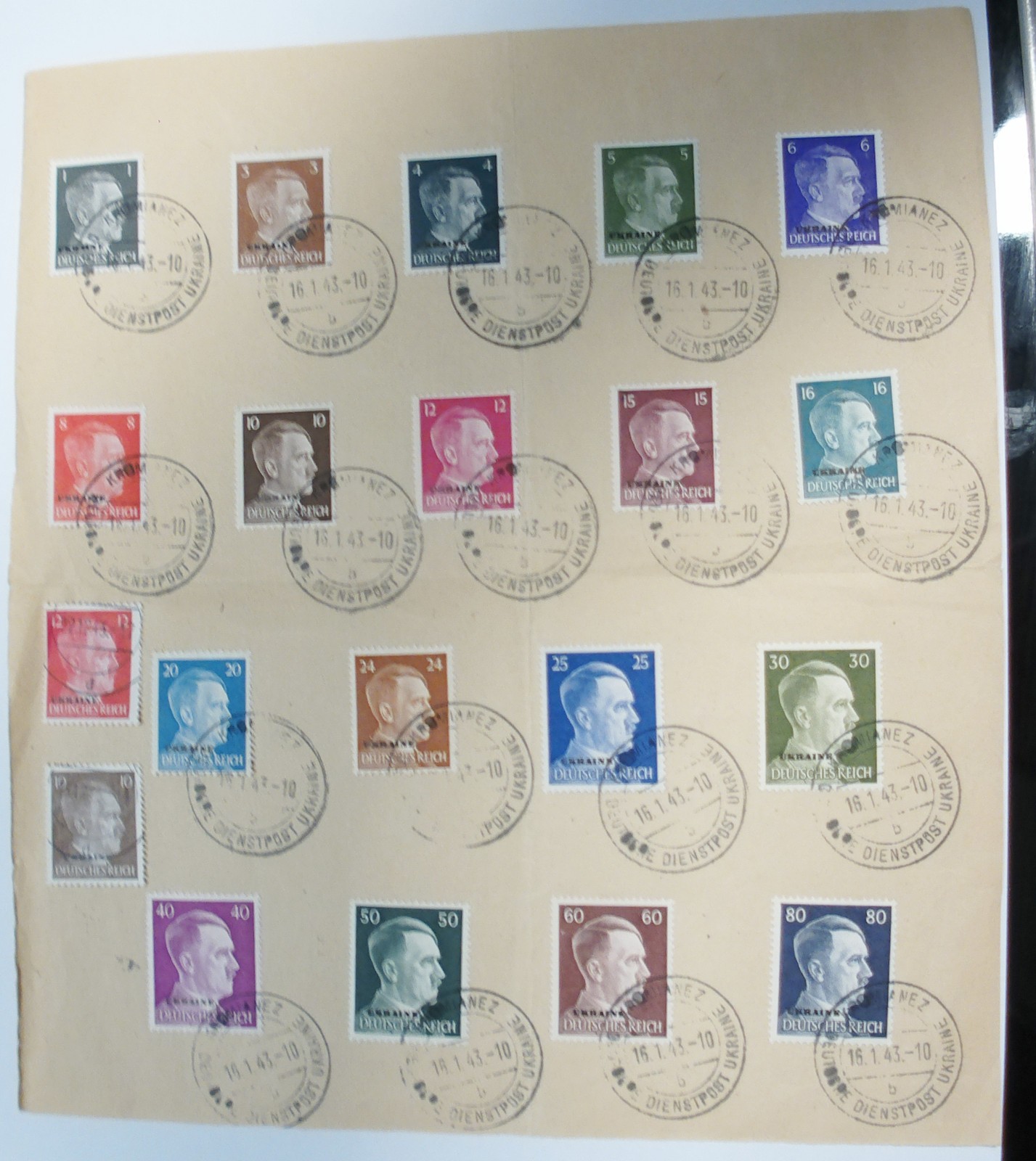 20 Briefmarken Ukraine Deutsches Reich Stempel Kromianez Dienstpost 1943