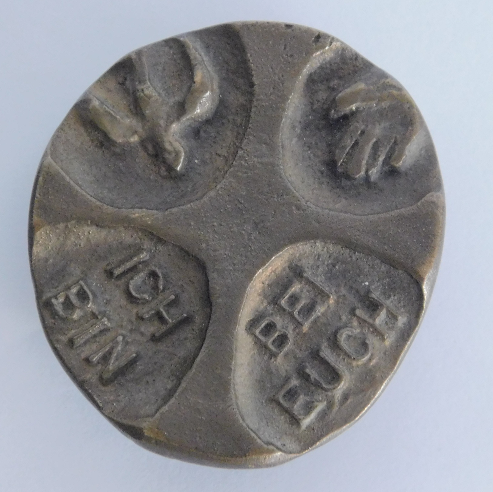 Kleines Bronze Relief Art Handschmeichler Ich bin bei Euch 5x4,5cm