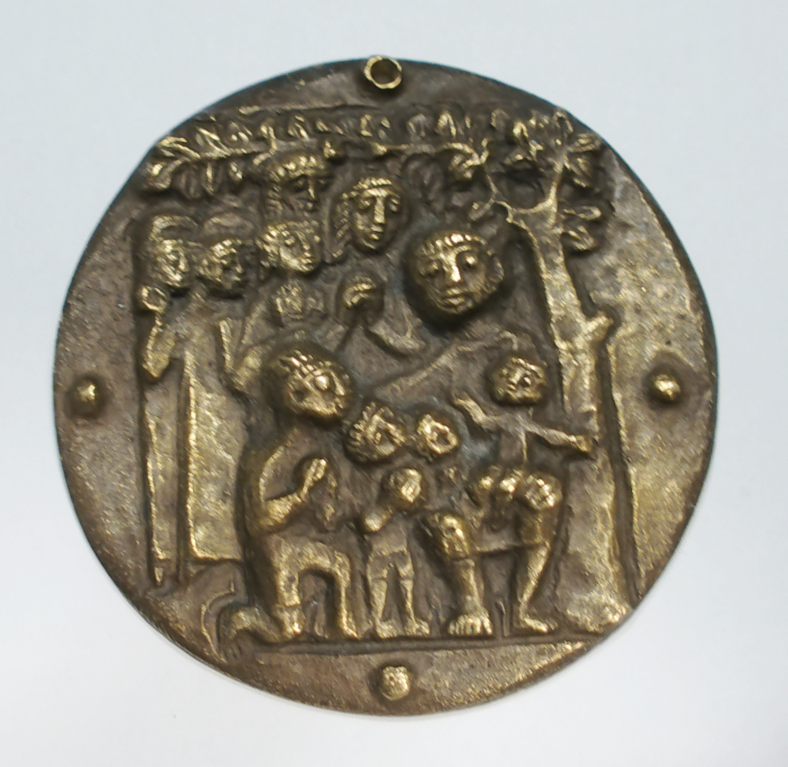 Bronze Plakette Relief Jesus der Kinderfreund Egino Weinert Ø6,7cm