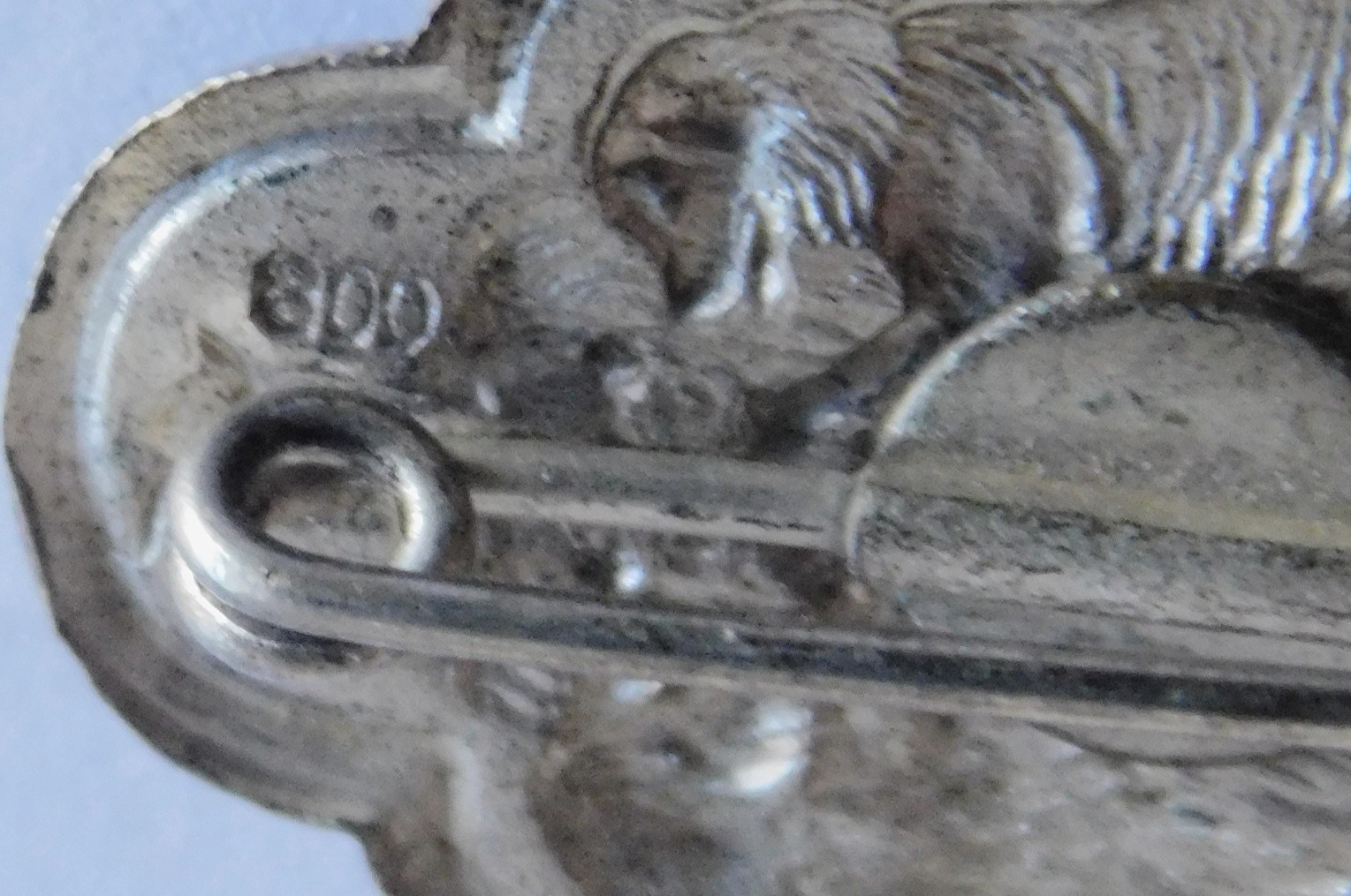 Preview: Altes Abzeichen Nadel Fachschule ungarische Hirtenhunde 3x3,2cm Silber 800 6,5g