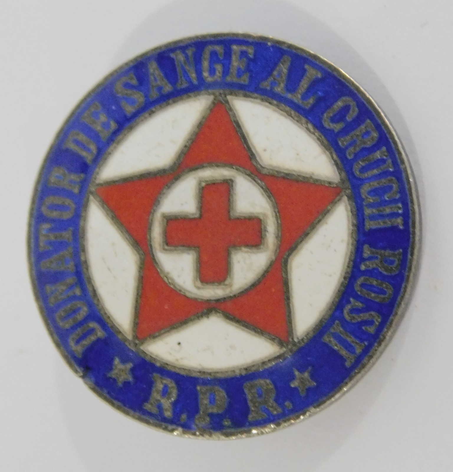 Alte Nadel Brosche Abzeichen Rotes Kreuz Rumänien Blutspenden Email Ø2,5cm