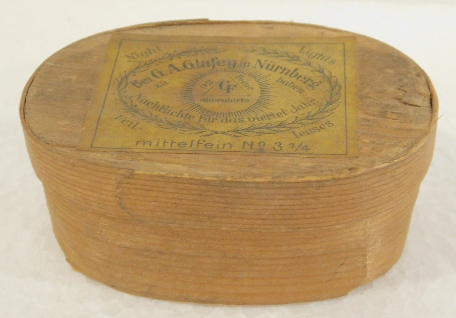 Alte Holz-Spanschachtel mit original altem Papieraufkleber: Night-Lights bei G. A. Glafey in Nürnberg Nachtlichte mittelfein, leer - OHNE Inhalt, altersbedingter gebrauchter Zustand, unten ca. 7,2 x 4,8 cm, Höhe mit Deckel geschlossen ca. 3,3 cm, Gewicht ca. 8,5 Gramm.